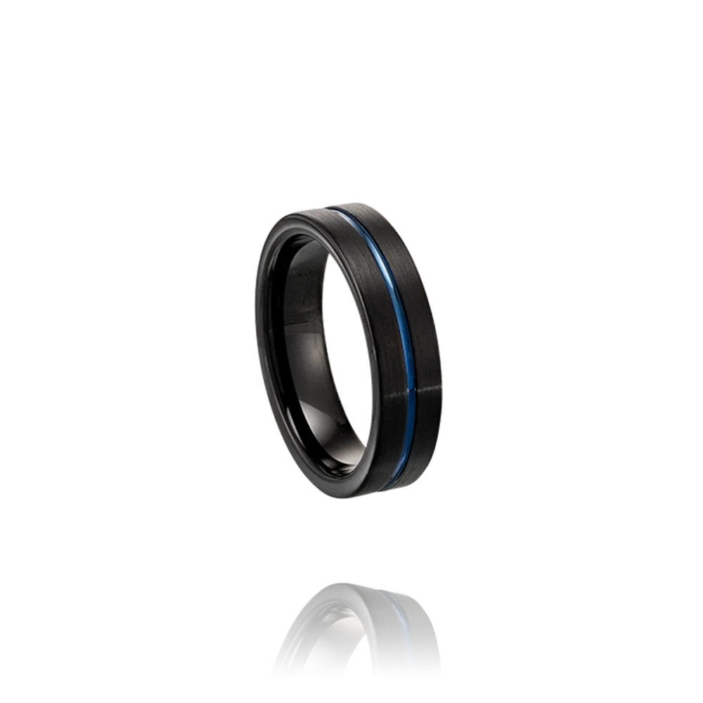 Bracelet "Donovan" en PVD noir et Cuir bleu