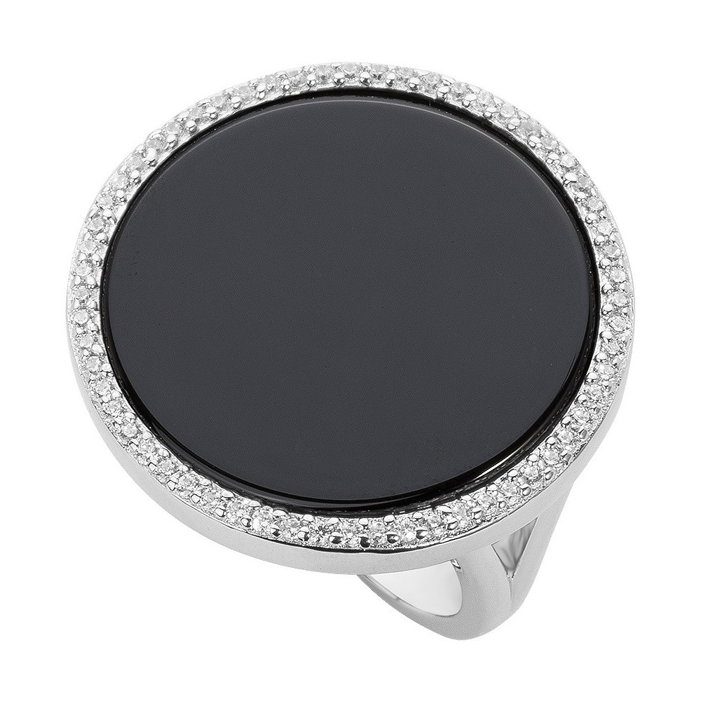 Bague en argent 925 rhodié, céramique noire et oxyde de zirconium.