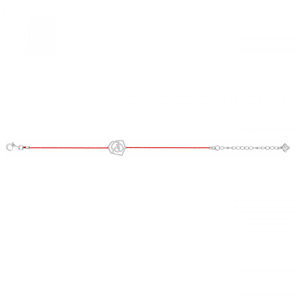 Bracelet en argent 925 rhodié et diamant HSI 0.015 carats. Un bracelet pour forme avec un joli bracelet rouge, arborant fièrement un motif en forme de rose.