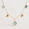 Le collier EMMA en plaqué or est ornée de pampilles en pierre d'amazonite alternée avec des pampilles martelées. La marque Ana & Cha est notre coup de cœur 💕 de l'année.