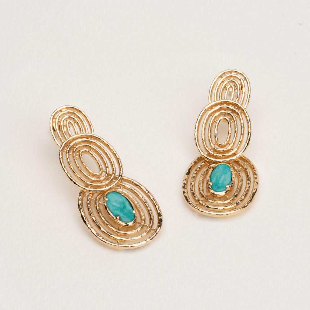 Boucles d'oreilles BELLA en plaqué or et Amazonite. La marque Ana & Cha est notre coup de cœur 💕 de l'année.