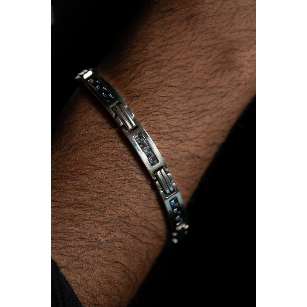 Bracelet en acier et carbone bleu. Magnifique bracelet en carbone bleu pour un look intemporel.