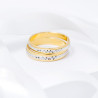 Magnifique alliance composée d'une bande centrale en or blanc à l'effet diamanté brillant sur une base et des côtés en or jaune.