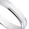 Alliance en Or blanc 750/1000 ou 375/1000. Cette bague combine à la fois une finition mate brillante au centre à une finition polie brillante sur ses bords.