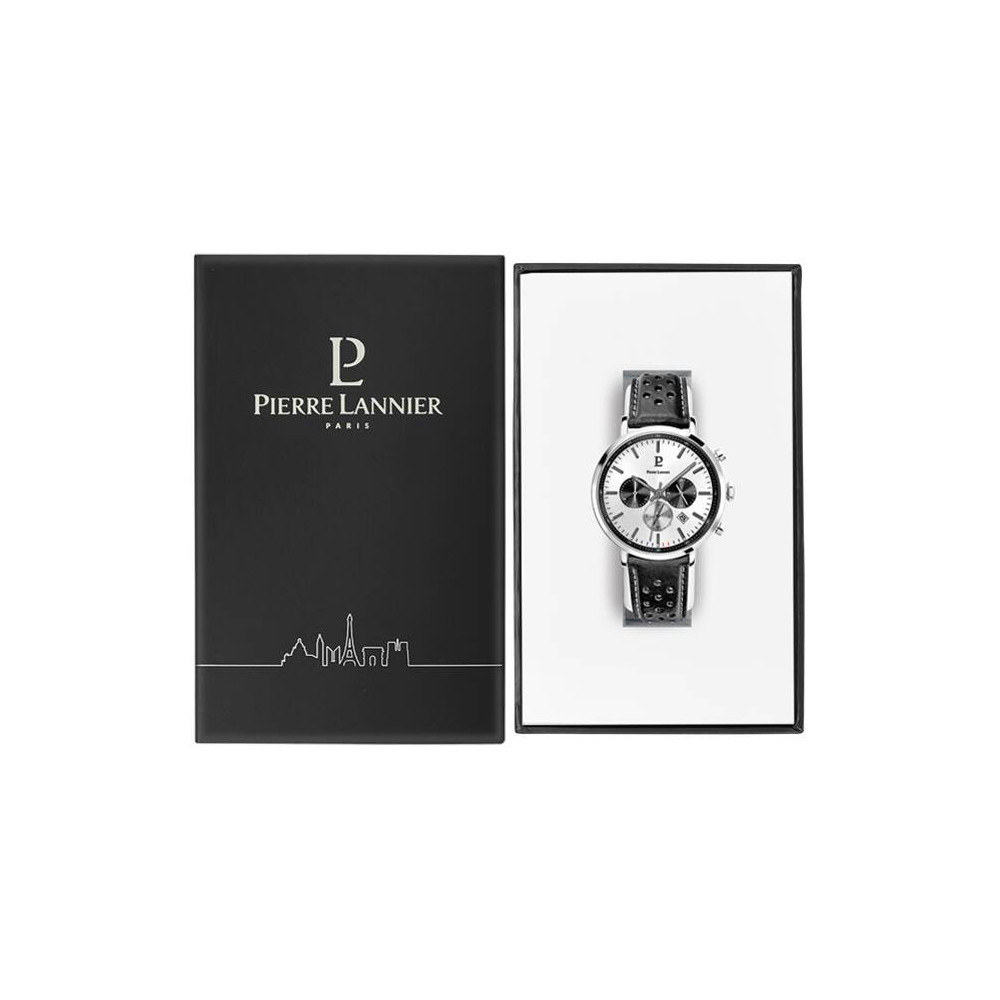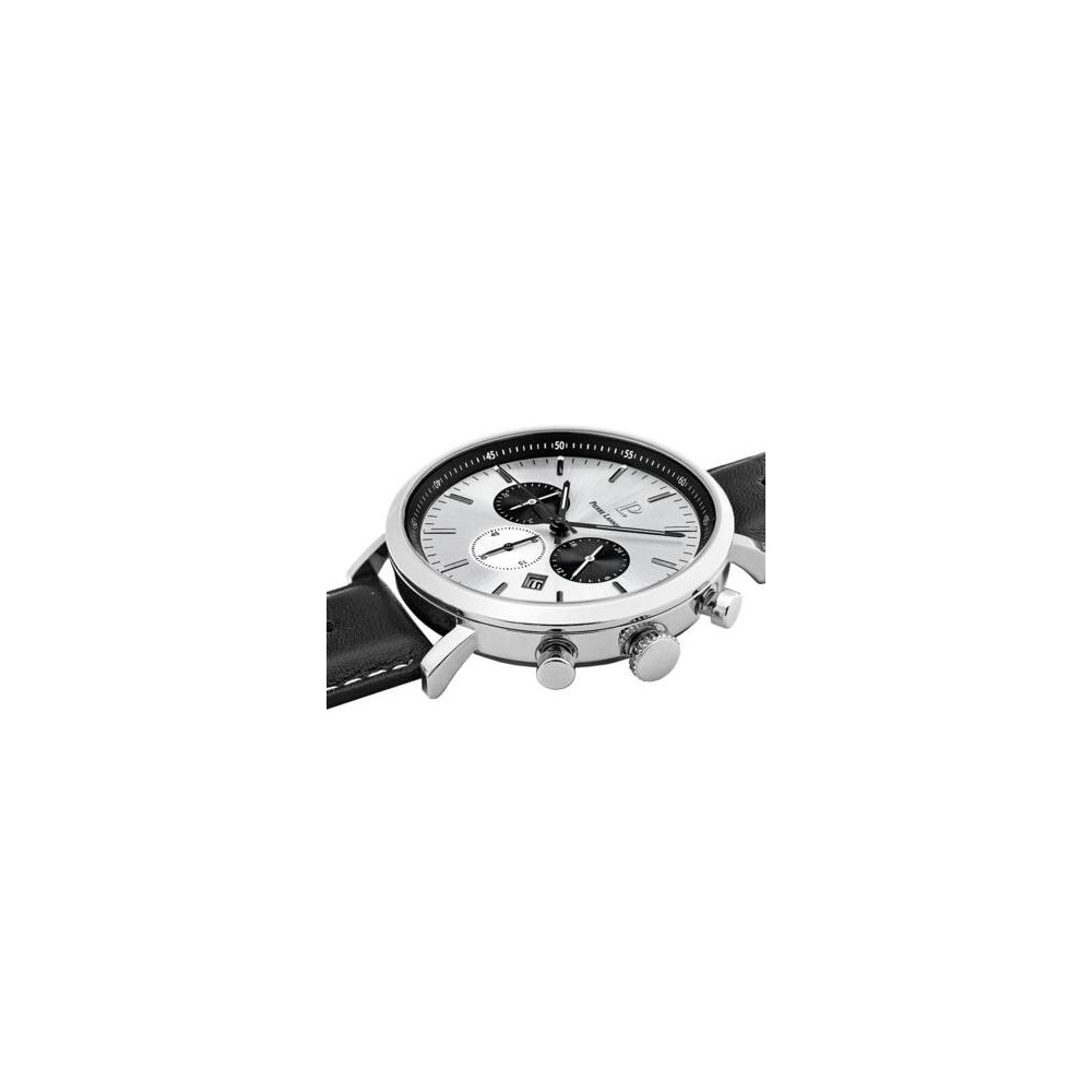 La montre BARON en acier argenté est une alliance parfaite avec son bracelet en cuir noir perforée.
